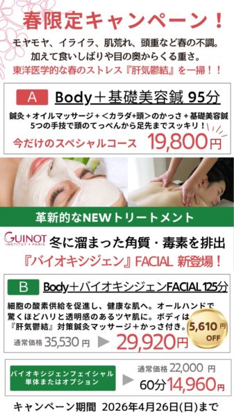 本日スタート🌸春のキャンペーン 東洋医学的『肝気鬱結』を一層❣️